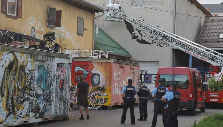 Na območju mariborske Pekarne je v soboto več policistov in gasilcev izbrisalo novo nastali grafit Janeza Janše.