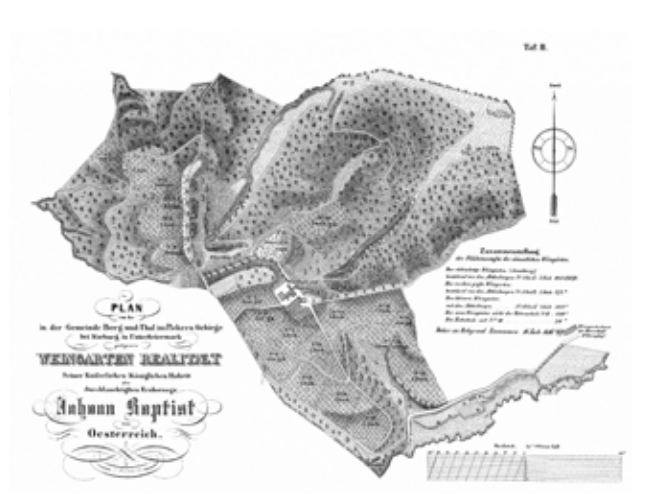 Zato se je odločil v naše kraje prenesti sorte, ki so uspevale ob Renu. Zaradi ugodne klime je leta 1822 kupil posestvo v okolici Peker in Limbuša, ki je danes poznana pod imenom Meranovo. Leto kasneje so tam začeli saditi nove sorte trt in trud je kmalu obrodil sadove. Njegovi vinogradi so pričeli pridobivati na ugledu, zato so na Meranovem leta 1832 ustanovili prvo vinogradniško šolo na Štajerskem.