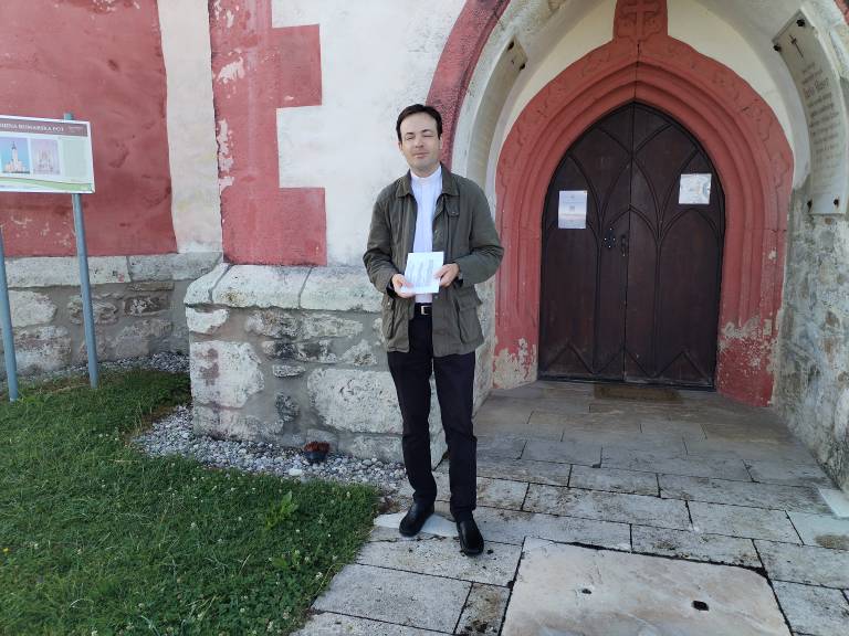 »Cerkev je izrazito romarska, tukaj imamo romarje,« razlaga župnijski upravitelj Sebastijan Valentan.