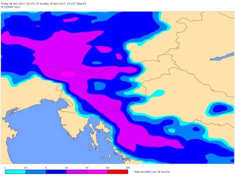 Po besedah vremenoslovcev bo glavno dogajanje v noči na nedeljo, ko nas bo prešla izrazita hladna fronta. Padavine se bodo razširile nad vso državo, meja sneženja pa se bo spustila za skoraj 2000 metrov.