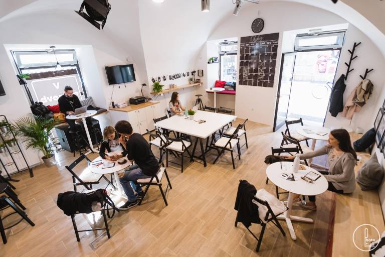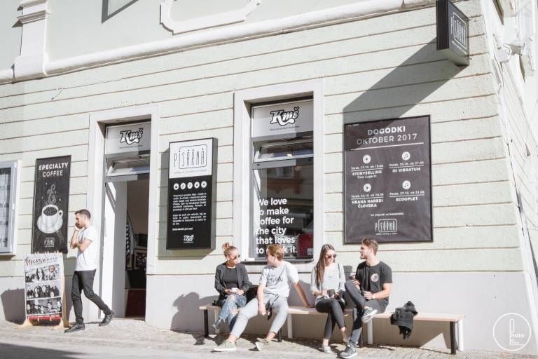 Tako tudi sicer ožja ponudba bazira na lokalni ponudbi mladih. »S Pisarno smo tudi želeli povezati Maribor z nami – tukaj imamo kavo iz Tovarne kave, slaščice Vilinska tortica, pivo iz mikropivovarne Lobika,« pojasnjuje Kebrova, medtem ko Juršetova dodaja: »Ponudba v Pisarni je sicer ožja, saj gre v prvi vrsti za co-working prostor – gre za združevanje kave in pisarne. Prostor, kamor lahko pridejo ljudje delat – velike mize pa so namenjene njihovem povezovanju, saj se na neki točki vzpostavi med njimi komunikacija. Tako smo tudi ponudbo izbirali med mladimi, ki v Mariboru nekaj počnejo.«