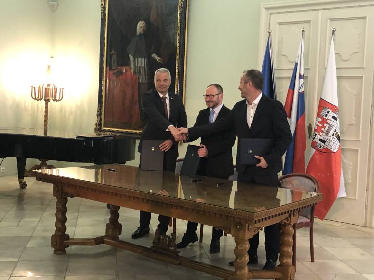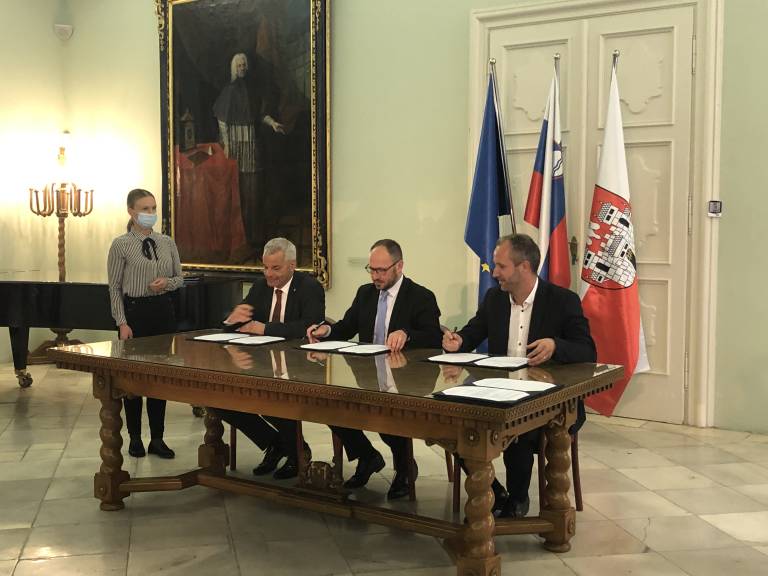 Protokol so podpisali minister za infrastrukturo Jernej Vrtovec, župan Mestne občine Maribor Saša Arsenovič in župan občine Hoče - Slivnica Marko Soršak.