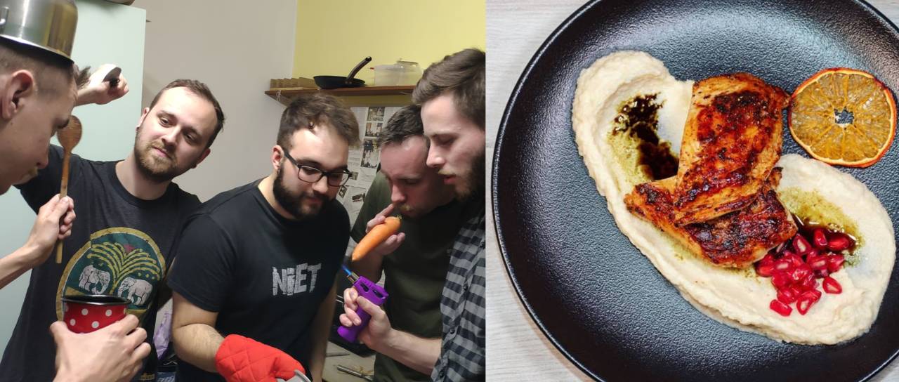 »Mala kuhna je rezultat prijateljstva in druženja, ljubezni do kuhanja, hrane in pijače ter predvsem študentskega življenja in vsega kar sodi zraven. Po našem mnenju mladi in predvsem študentje pozabljajo, da si je pripraviti zdrav, poceni in izviren obrok resnično preprosto, ob tem pa se še pozabavati in ohraniti prijateljstvo – v živo, saj se hrane ne da deliti preko socialnih omrežij,« takoj pojasni Andrej Vindiš, ki vihti kuhalnico. Ali pa tortiljo iz rdeče pese.