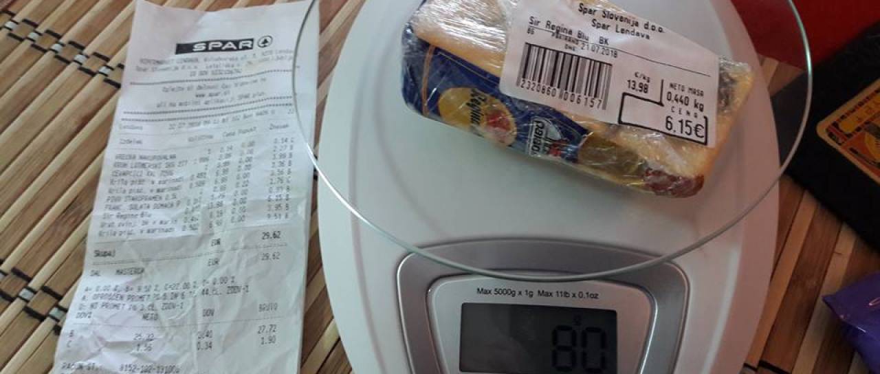 Kamen na kamen palača ali iskrena napaka? Krepko preplačali sir, ki je domnevno bil nepravilno stehtan.