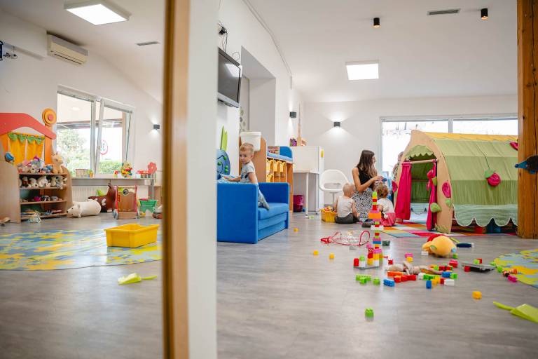Vrtec Naši mali škratki ima veliko skupno igralnico, v kateri se otrok glede na starost ne ločuje:
