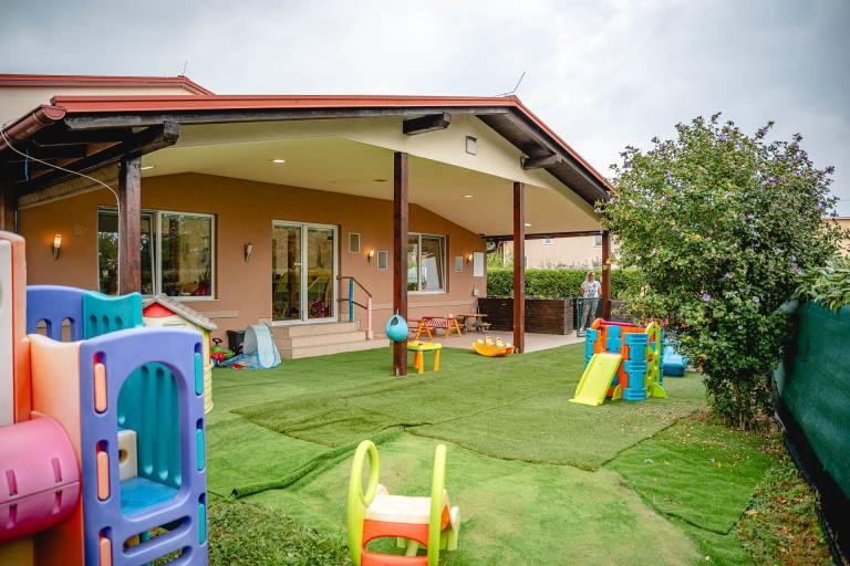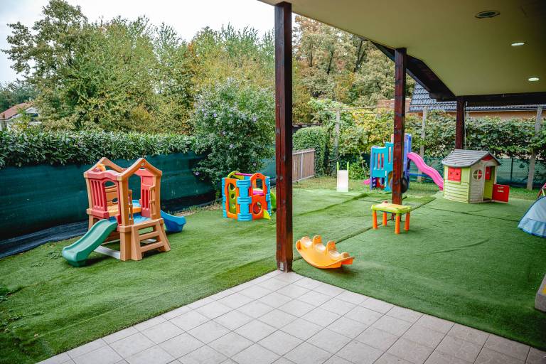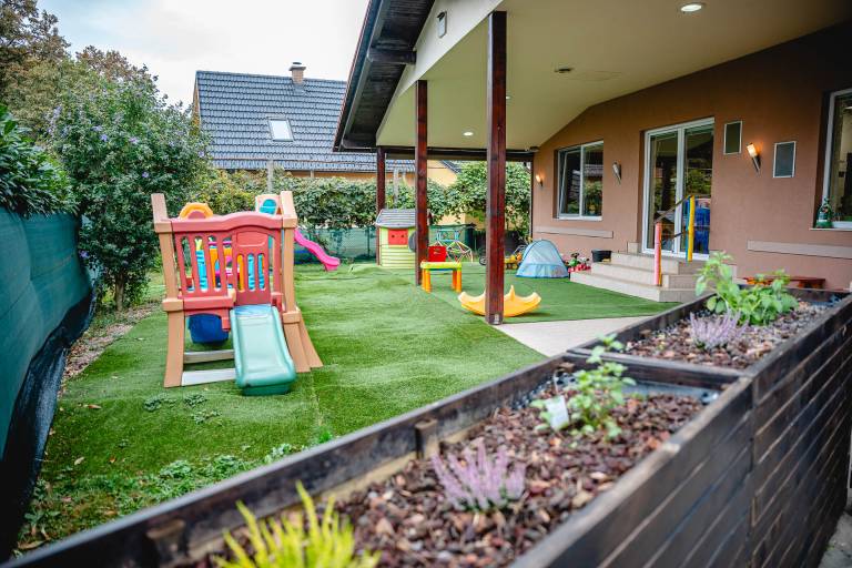 Otroci v gozdnem vrtcu znajo poimenovati ptice, drevesa, ne bojijo se dotakniti polžev ali gosenic. Čar igre najdejo v naravi s plezanjem in raziskovanjem. Na dvorišču imajo predel z umetno in pravo travo, na obrobju je tudi vinska trta. Del dvorišča je pokrit s streho, tako so otroci lahko zunaj tudi v primeru dežja: