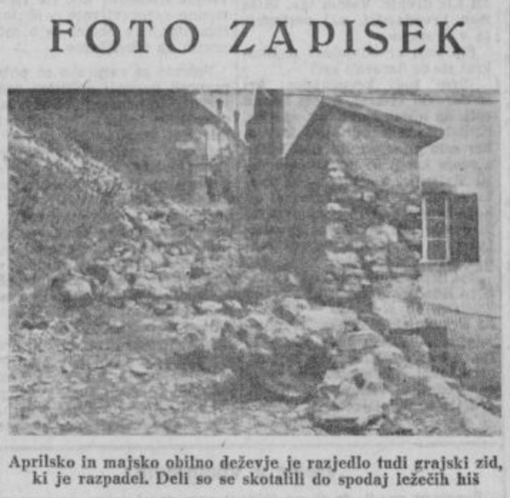 Junija 1965 je takratni časopis Tednik, danes Štajerski tednik, objavil foto zapisek: »Aprilsko in majsko obilno deževje je razjedlo tudi grajski zid, ki je razpadel. Deli so se skotalili do spodaj ležečih hiš.«