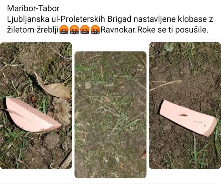 Mariborčani so opazili nevarne klobase na območju Tabora, v katerih so bile vstavljenih več žiletk.