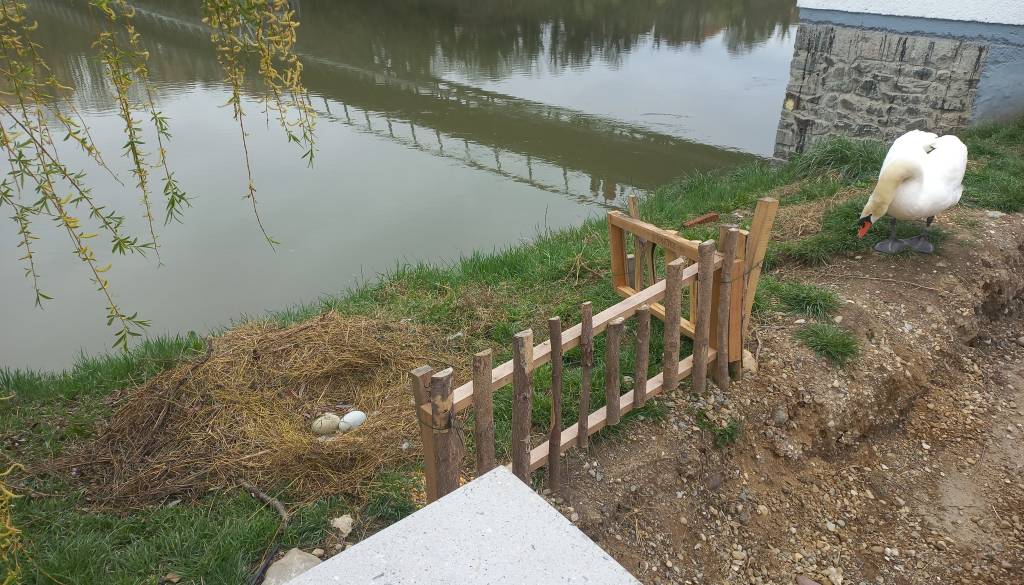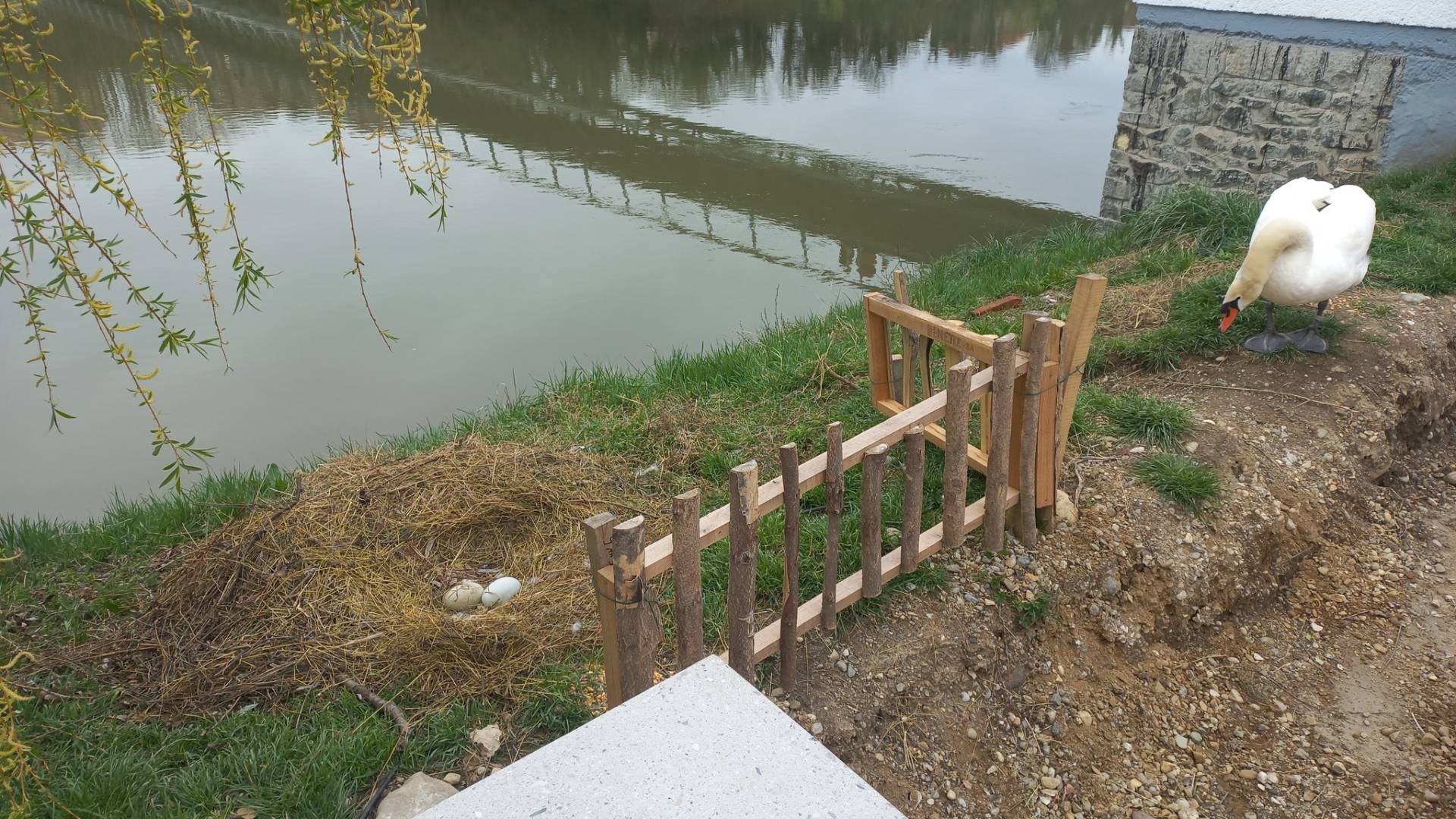 Ker je tako prostor za gnezdo, ki ga izbere labodji samec in ga labodka 'odobri', tik ob gradbišču, je Snaga Maribor ob sodelovanju Skupne službe varstva okolja Skupne občinske uprave Maribor gnezdo zaščitila z ograjico.