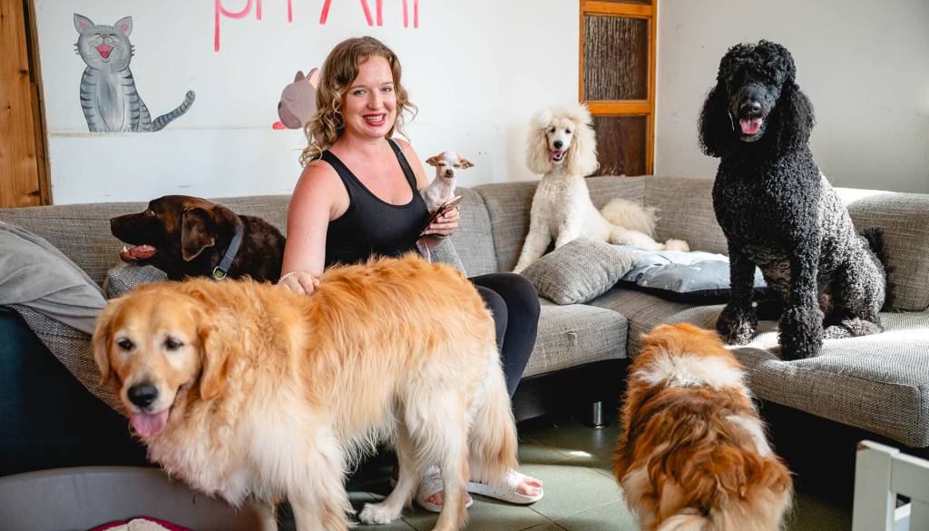 Po začetnem raziskovanju je ugotovila, da večina pasjih hotelov nudi bokse, kar pa v njenem primeru ni prišlo v poštev, saj za vse pse skrbi tako, kot za svoje. To pomeni, da se vsakemu prilagodi, in da po potrebi spijo tudi ob njeni postelji, z njimi pa se ukvarja ves dan: