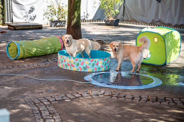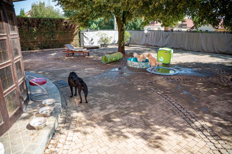 Psom in mačkam je na voljo velik travnik in dvorišče z bazenom in škropilniki, poleg tega hodijo tudi na sprehode. Lahko so v družbi drugih psov ali pa imajo več časa zase - kakor kateremu psu odgovarja. Pri tem pa Ana poudarja, da je hranjenje strogo ločeno.