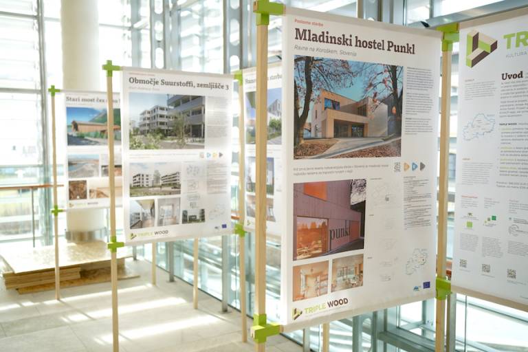 Obiskovalci so si lahko ogledali razstavo Triple Wood, ki predstavlja pametno uporabo lesa kot gradbenega materiala. Pripravila jo je Lesarska šola Maribor v sodelovanju z zavodom Lesarski grozd.