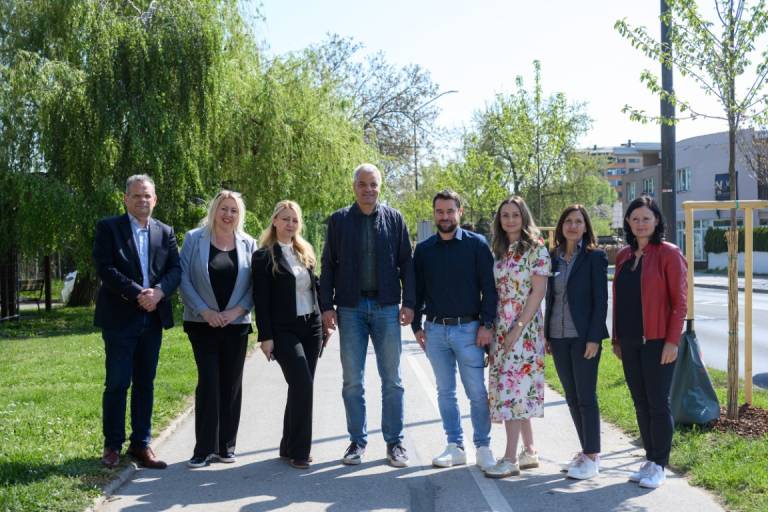 Na Čufarjevi ulici v Mariboru so v okviru partnerske trajnostne iniciative Drevesa, najlepša zavesa zasadili nov drevored okrasnih divjih češenj in trajnic.