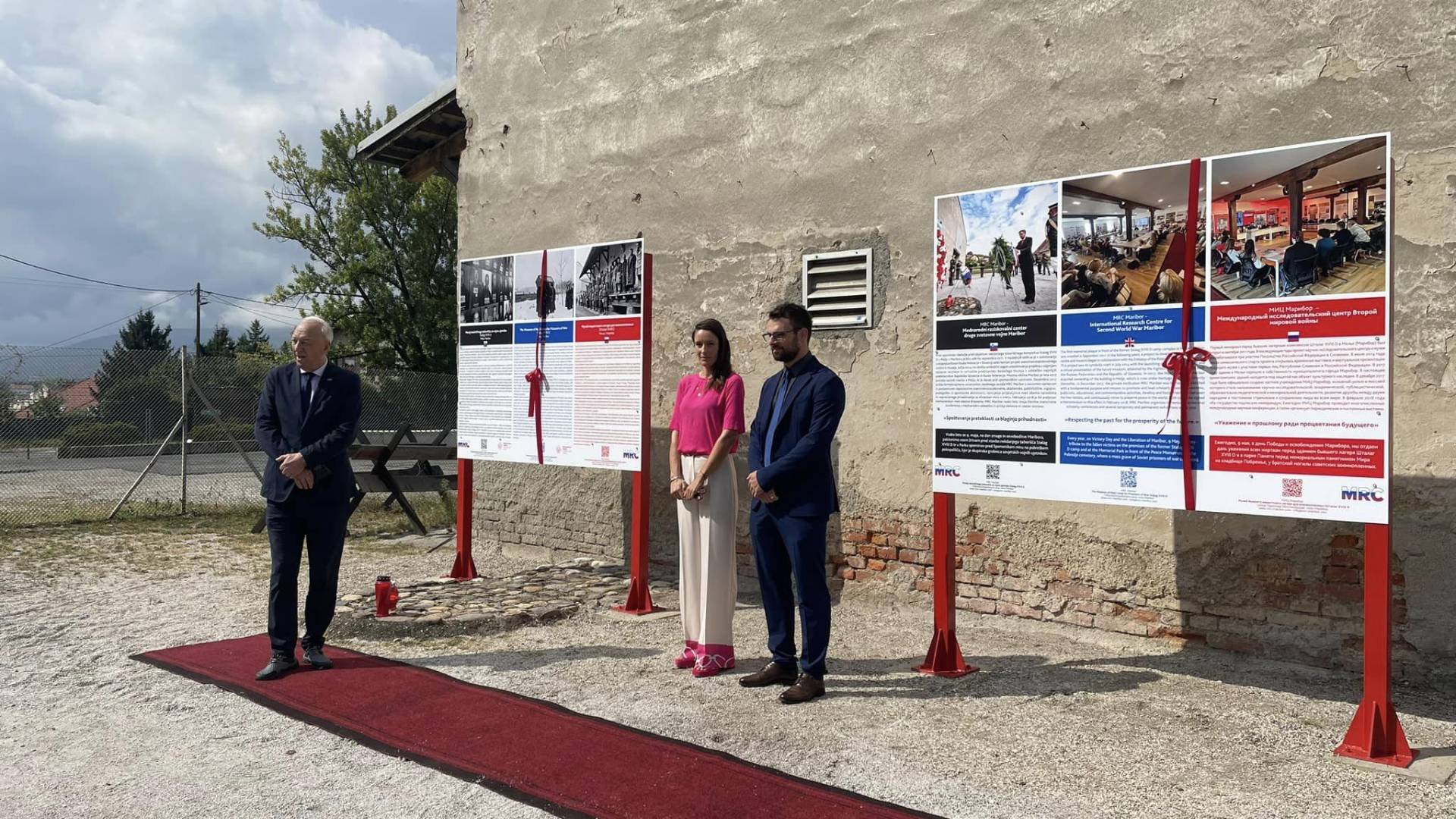 Tabla pred objektom, ki so jo postavili leta 2011, je bila poškodovana v prometni nesreči, zato so zdaj postavili novi. Na prvi je predstavitev nekdanjega nacističnega taborišča Stalag XVIII D in na drugi predstavitev centra.