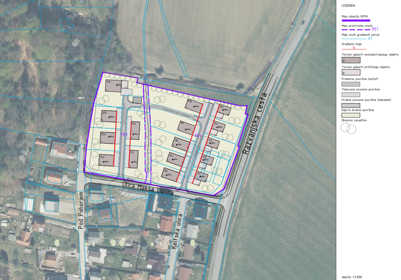 Načrt predvideva gradnjo enodružinskih hiš ter pripadajoče zunanje, prometne in komunalne ureditve. Javna razgrnitev občinskega načrta je potekala od 21. avgusta do 29. septembra, v tem času je potekala tudi javna obravnava predmetnega osnutka občinskega prostorskega načrta.