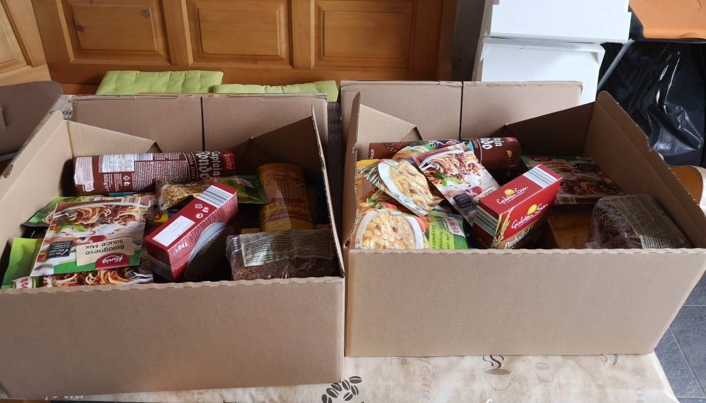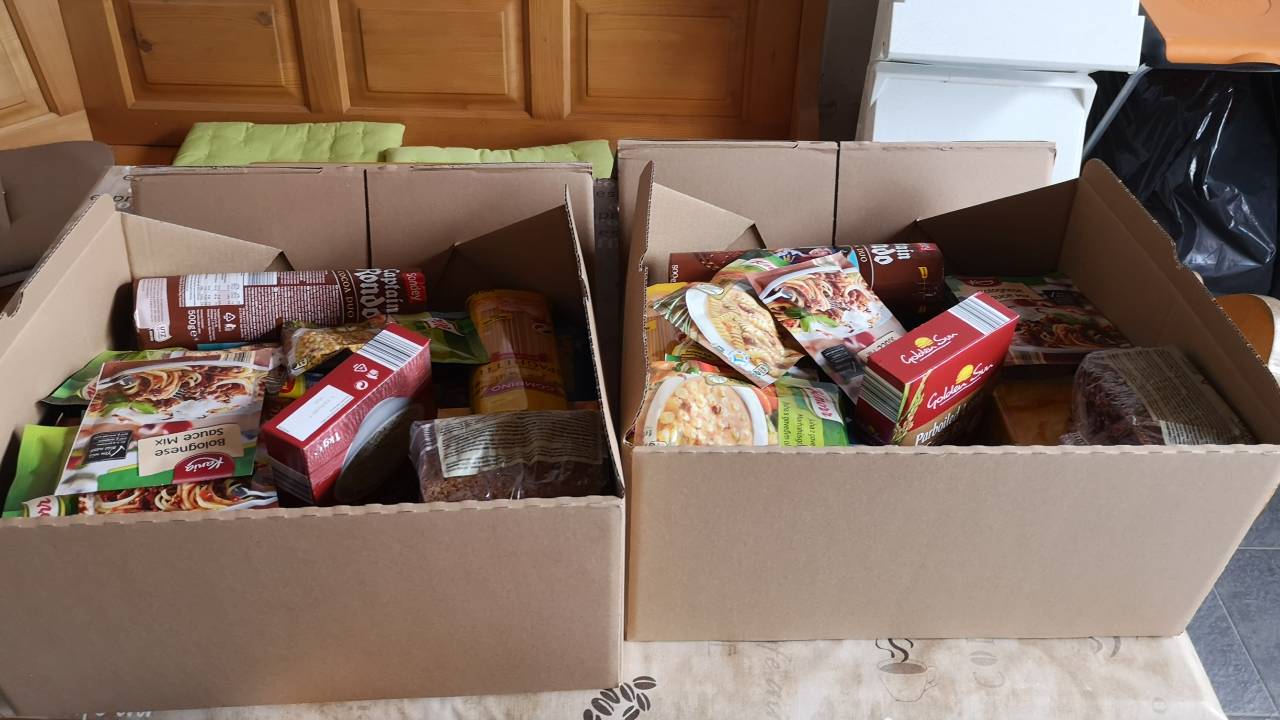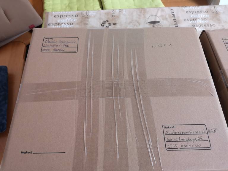 Ker so pisali, da najbolj potrebujejo denarna sredstva, vzamejo pa tudi hrano, oblačila, stari za gospodinstvo in tako dalje, sem se odločil za pakete hrane. Paketa bi naj bila namenjena dvema posameznikoma, za 59-letno L. A. iz Maribora in za 64-letnega L. R. iz Maribora, en paket je bil v vrednosti okoli 70 evrov,« nadaljuje Senegačnik. Slednje je razvidno tudi iz fotografij, ki jih je posnel, preden je predal pakete.