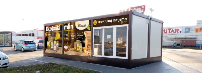 Prodajajo izključno slovenske in ekološke izdelke. V modularnem objektu imajo tudi lasten mlin na katerem meljejo žito v moko in zdrob, živila pa tudi sami pakirajo. Ponujajo kaše, zdrob, olja, darilne košarice, moko, semena, kosmiče, ajdove vzglavnike, mlince, jušne zakuhe, lastno proizvodnjo slovenskih ekoloških testenin, meljejo pa najbolj svežo slovensko ekološko moko.