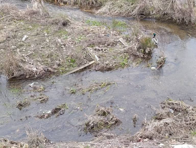 Zaradi nizkega vodostaja in, kot pravi, odsotnosti čiščenja se v kanalih ob otokih zatika več naplavin, od vej in desk do plastenk in pločevink.