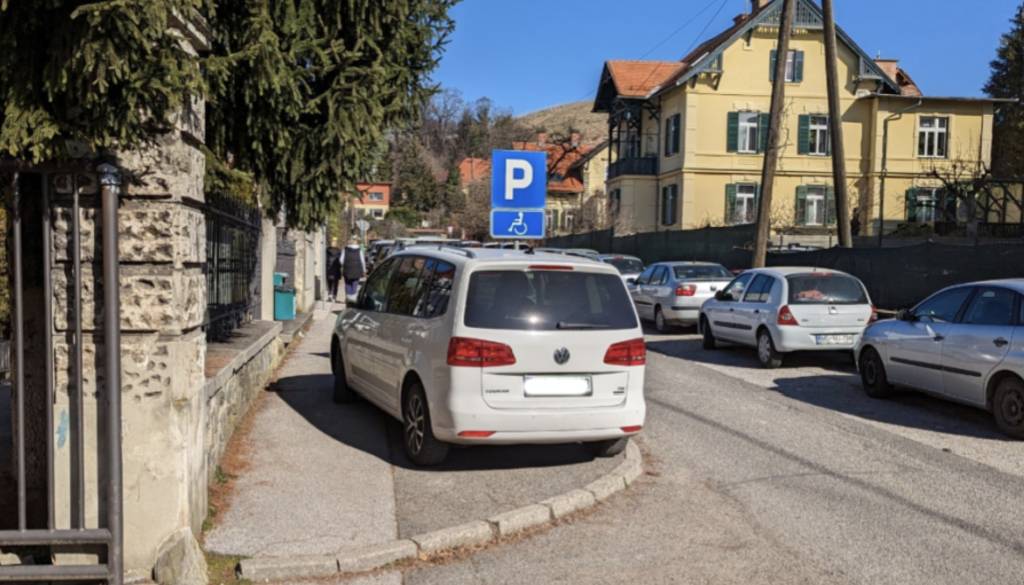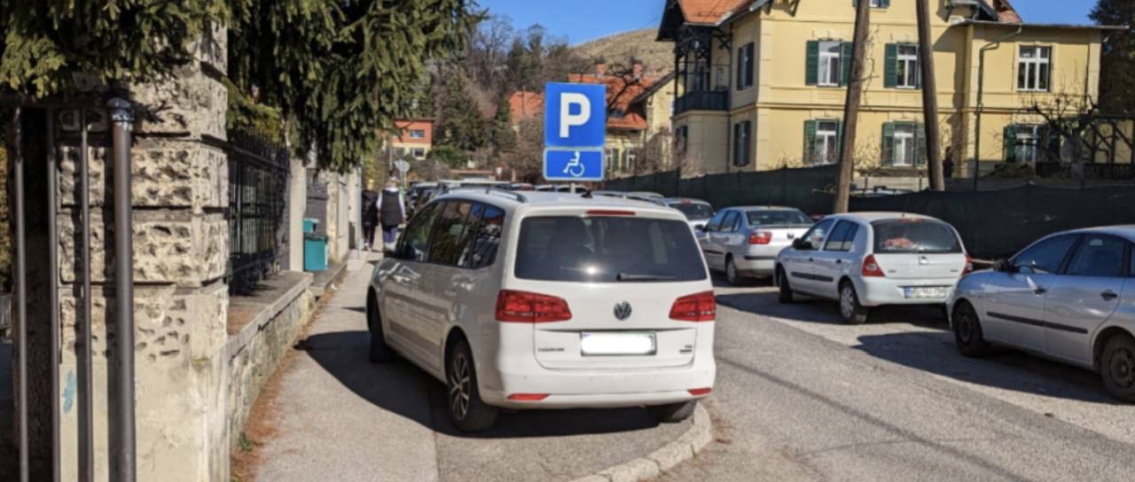 »Skoraj da ne mine trenutek, ko med delovnikom ta pločnik pred vhodom v Center za sluh in govor ni zaparkiran,« je zapisal in dodal, da nekateri parkirajo povsem do ograje.