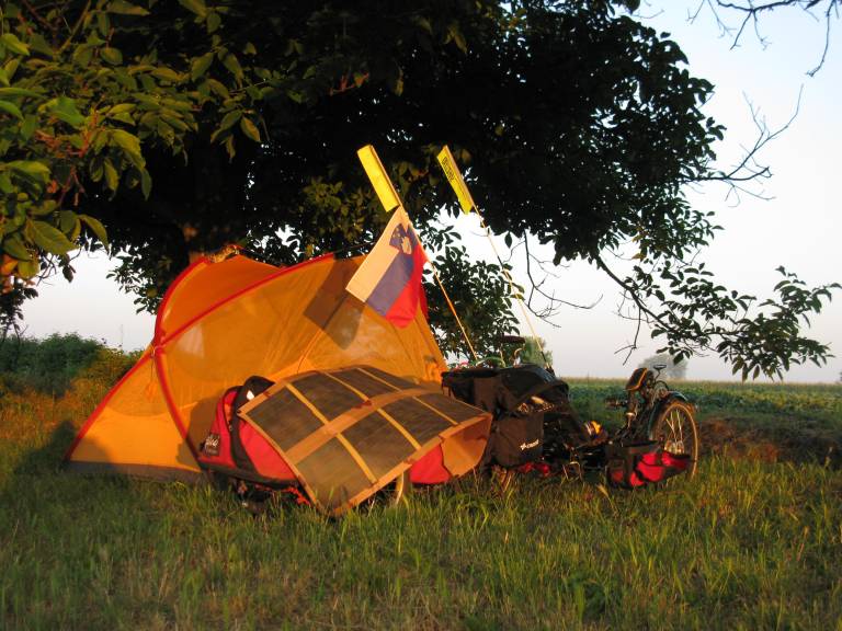 Sogovornik na svoji poti navadno prespi kar v šotoru, ki ga vozi s seboj. »Pripeljem se do hiše in vprašam, če lahko na dvorišču postavim šotor. Če dobiš dovoljenje, to avtomatsko pomeni, da dobiš zraven še večerjo in zajtrk. Tudi v Franciji sem poskusil, ker sem si želel stika z domačini, pa mi je uspelo zgolj pri eni kmetiji. Dovolili so mi, da postavim šotor ob cesti okoli 200 metrov od hiše, a ni bilo nikogar k meni povprašat za vodo, ali kako sem, kam potujem. Če pa na primer na jugu ne ješ, bodo jezni nate.«