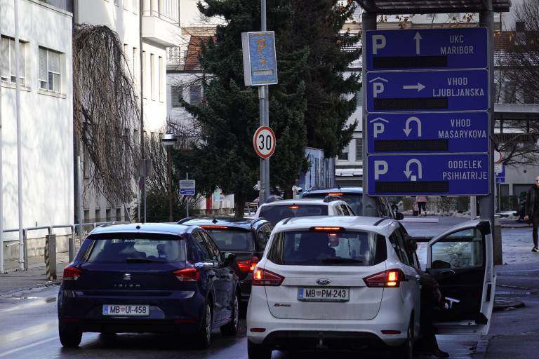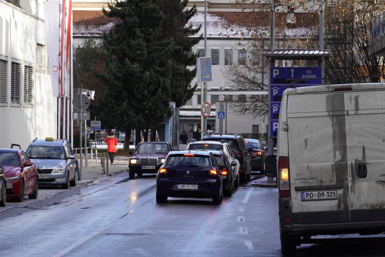 Zaradi čakanja na prosto parkirno mesto pri Univerzitetnem kliničnem centru Maribor dolgi zastoji na cestah v okolici.