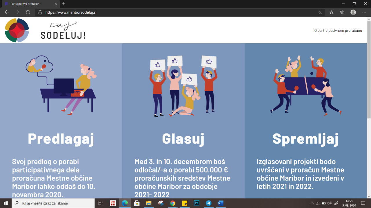Prilagojena aplikacija, kjer bo torej potekalo zbiranje predlogov, je občanom Maribora na voljo na spletni strani www.mariborsodeluj.si.