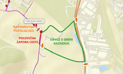 Zapora Razvanjske ceste v smeri Razvanja bo predvidoma trajala do 30. maja 2021. V času zapore bodo avtobusi na liniji številka 2 Kardeljeva–Razvanje vozili po spremenjeni trasi.