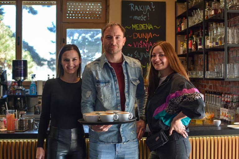Nove zaposlene dobro naučijo priprave kave. »Ko pridejo novi ljudje, jih ne pustimo za 'šank', dokler jih ne naučimo, da znajo kavo narediti 'v nulo',« razlaga.