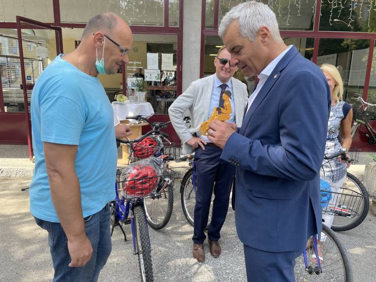 V sklopu predstavitve letošnjega Evropskega tedna mobilnosti so v Centru mobilnosti brezplačno popravili odslužena kolesa, ki gredo v uporabo pomoči potrebnim. Sledila je predaja šestih obnovljenih koles zavetiščema za brezdomce.