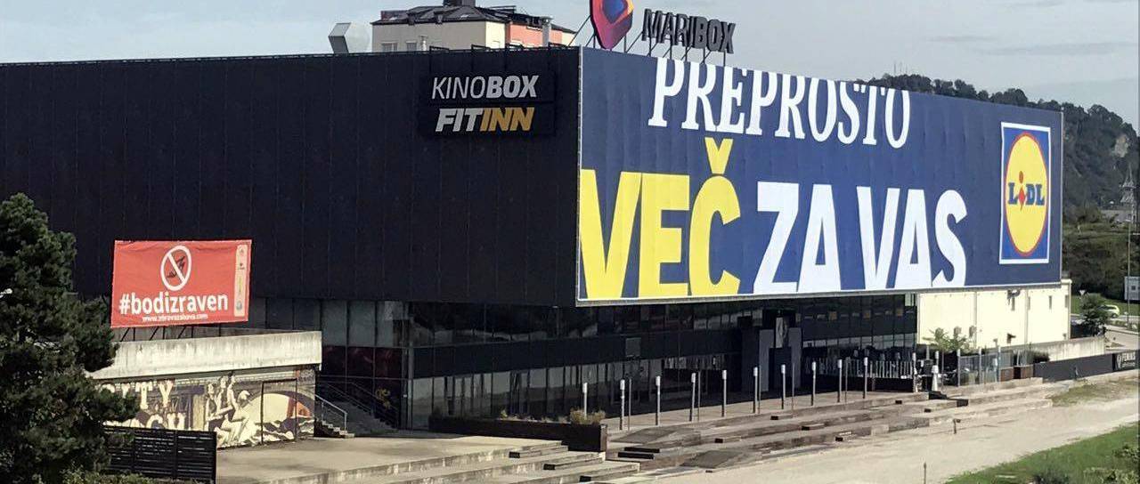 Maribor ima enega izmed največjih oglasnih prostorov v tem delu Slovenije. Južno steno nekdanjega Koloseja, zdaj že nekaj časa Mariboxa, ki ga nekateri Mariborčani kličejo tudi »črna kocka«, je znova zavzel velikanski oglas. Potem ko je pred tem pročelje prekrival oglas ponudnika telefonije, zdaj pozornost vabi modro-rumeni oglas nemškega trgovca. Oglas na zelo izpostavljeni lokaciji tudi tokrat razburja mnoge.