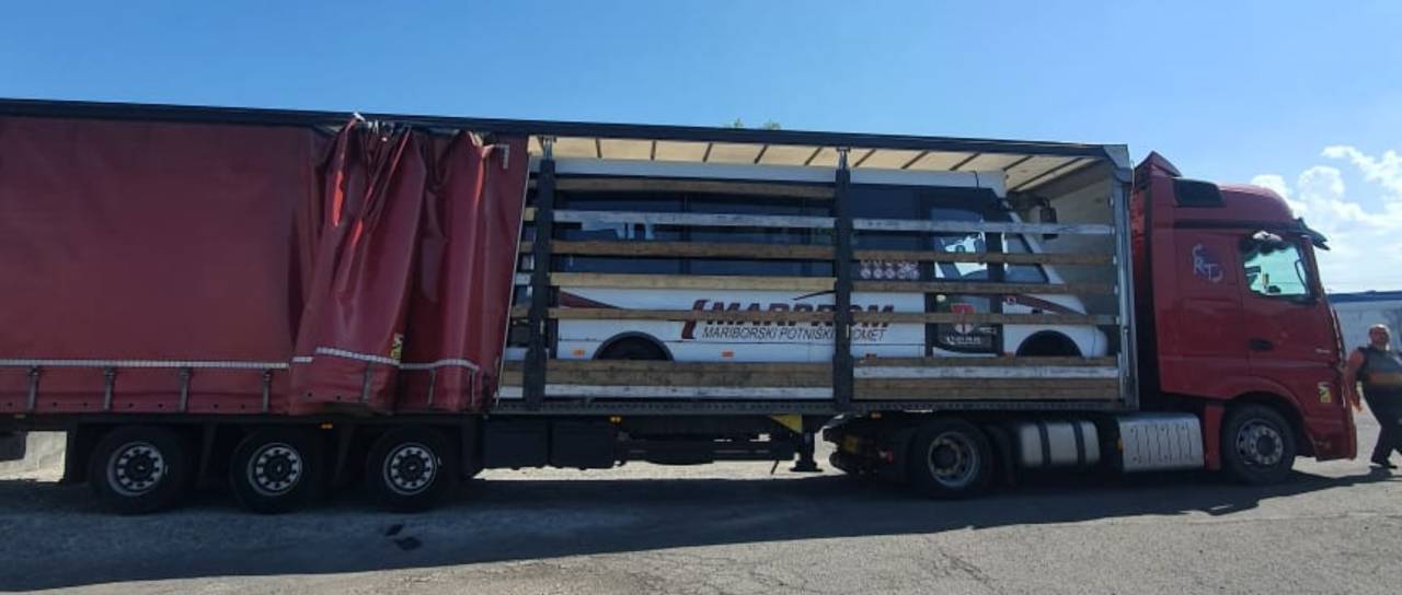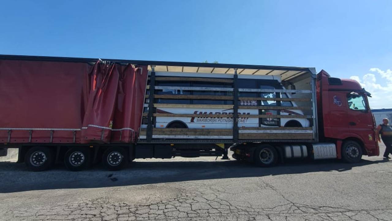 Mariborski avtobus že prispel v Harkov, med potjo dobil manjšo poškodbo