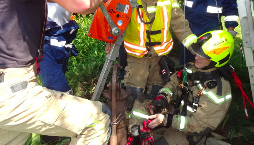 Mariborski gasilci so imeli danes nekoliko drugačno intervencijo. Okoli pol druge popoldan je v Spodnji Voličini v 17 metrov globok studenec padel pes.