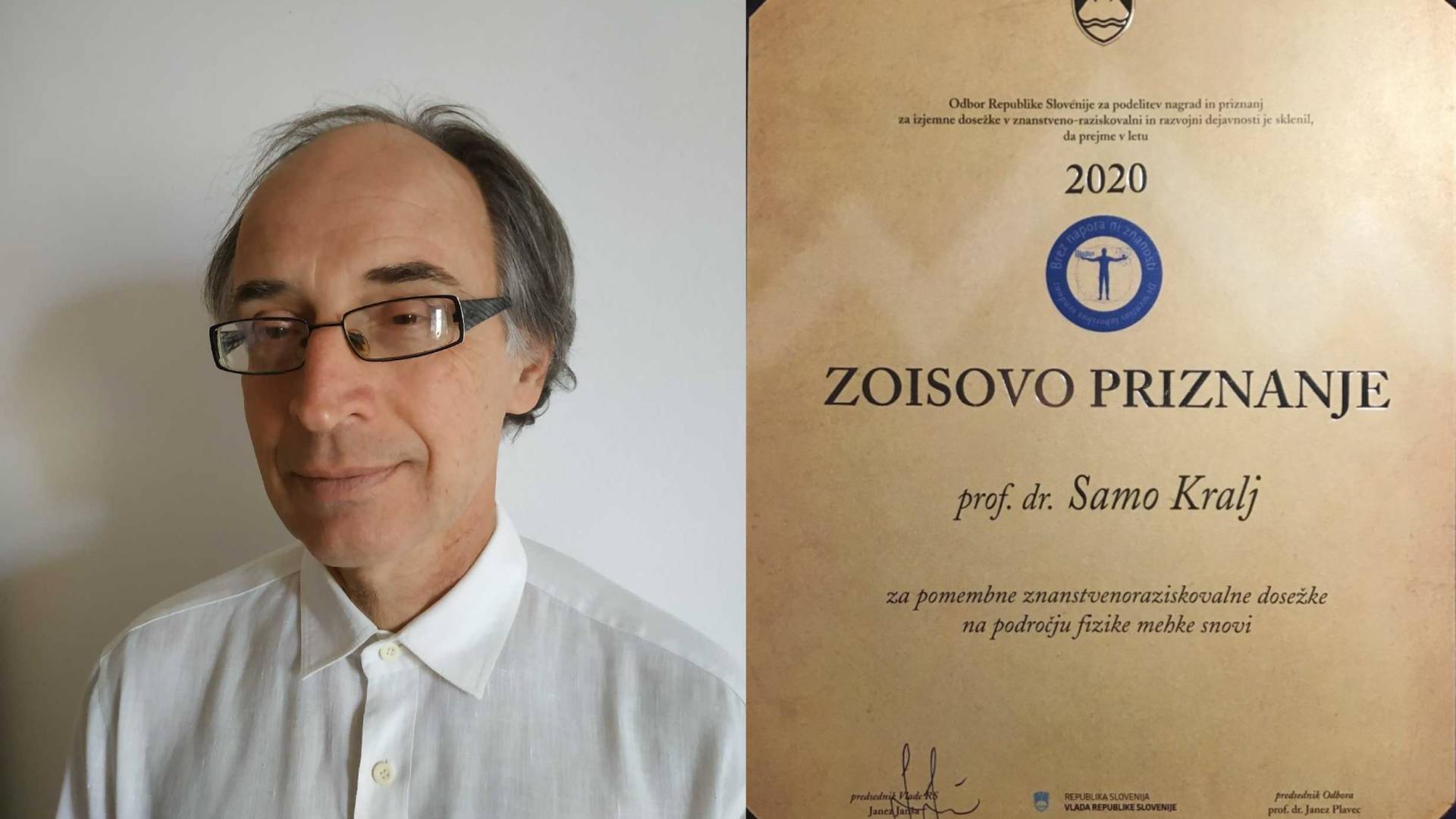 Profesor dr. Samo Kralj, redni profesor za fiziko na Fakulteti za naravoslovje in matematiko Univerze v Mariboru, je prejel Zoisovo priznanje, državno nagrado za pomembne raziskave na področju fizike tekočih kristalov, predvsem pojave, ki so osnovani na univerzalnih mehanizmih, kot so zlom simetrije in topologija, zato so njegovi izsledki uporabni tudi za druga področja fizike, vključujoč fiziko osnovnih delcev in kozmologijo.