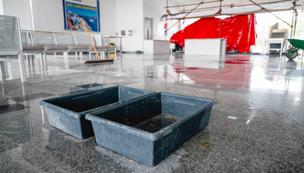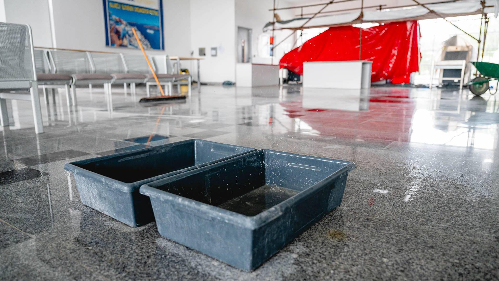 Kot je razvidno iz zadnjih fotografij, je potniški terminal bil ponovno poplavljen, na več mestih odpadata omet in plošče.