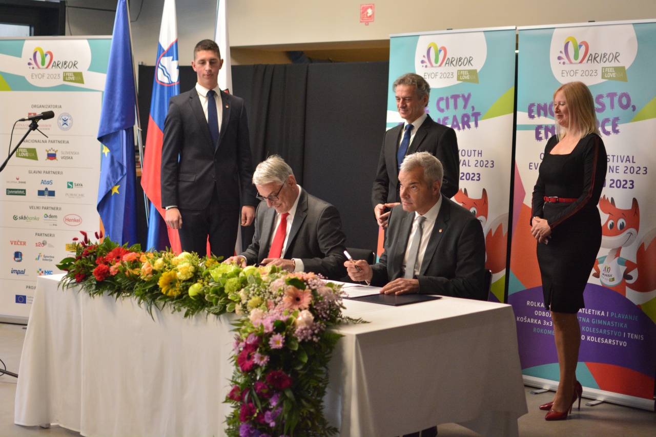 Ob tem je bil na današnjem dogodku predan tudi sklep vlade glede sofinanciranja izvedbe Olimpijskega festivala evropske mladine, s čimer je končno zaprta finančna konstrukcija tekmovanja.