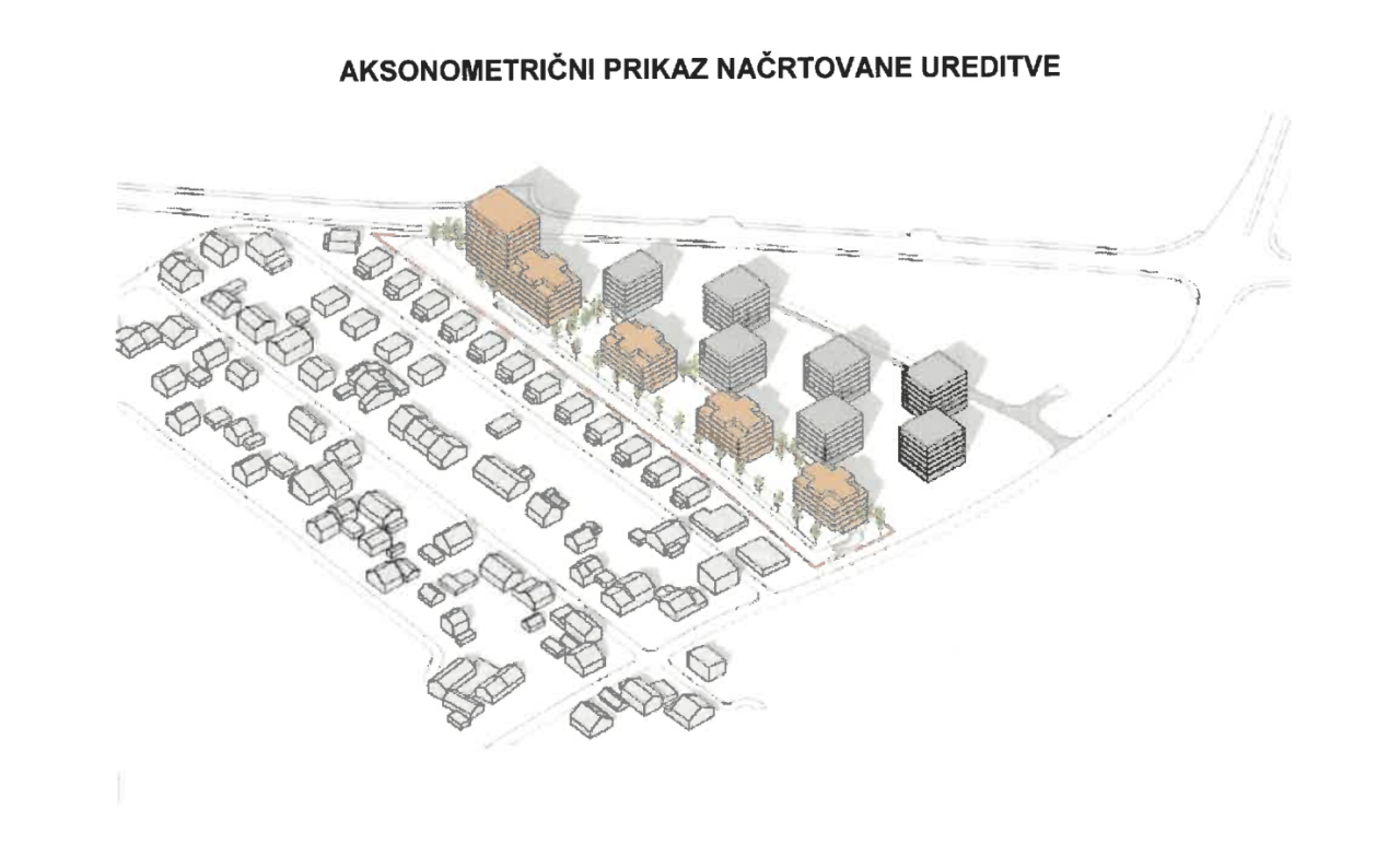 Kot je razvidno iz dokumenta objavljenega na spletni strani mariborske občine, grafični prikaz kaže zasnovo več ločenih večstanovanjskih stavb, razporejenih vzdolž celotnega območja.