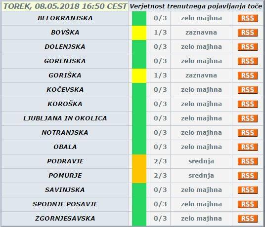 Napovedi vremenoslovcev se na žalost uresničujejo. Popoldan se namreč od vzhoda pojavljajo krajevne plohe in nevihte, ob katerih se lahko pojavi tudi kakšen močnejši naliv, izključena pa ni niti toča.