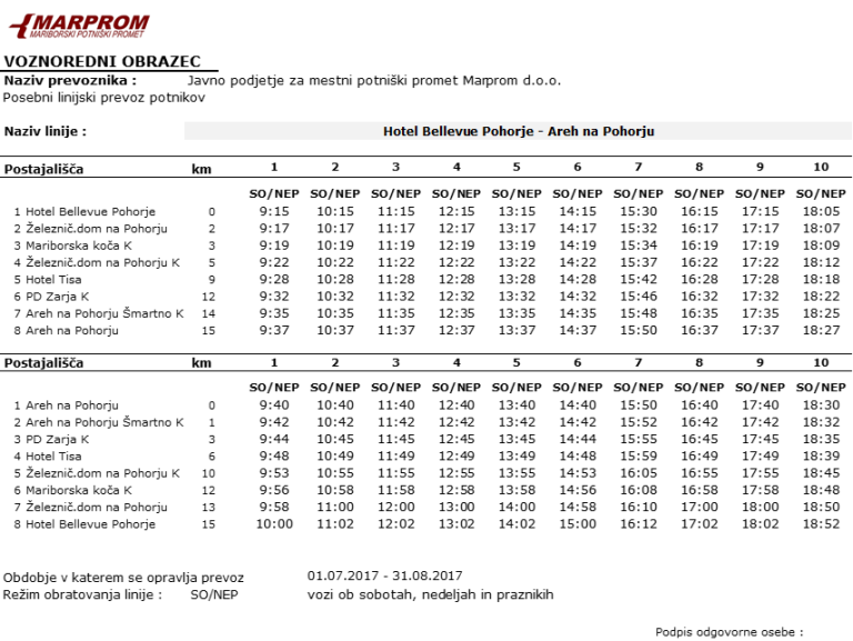 Danes Marprom uvaja posebno avtobusno linijo na Pohorju, in sicer od Hotela Bellevue do Areha z vmesnimi postajami pri nekaterih znanih pohorskih kočah in domovih. Manjši avtobus bo na relaciji Bellevue-Areh do 31. Avgusta vozil ob sobotah, nedeljah in praznikih, opravil pa bo 10 voženj dnevno.