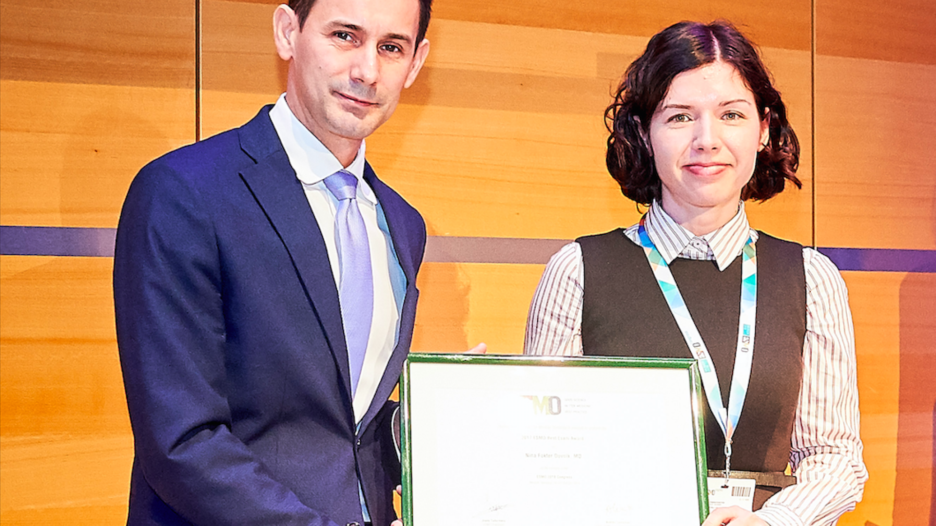 Dr. Nina Fokter Dovnik, dr. med., specializantka internistične onkologije, Oddelka za onkologijo UKC Maribor, je konec oktobra na kongresu ESMO (European Society for Medical Oncology) v Münchnu prejela posebno priznanje Evropskega združenja za internistično onkologijo, saj je na specialističnem izpitu iz internistične onkologije dosegla maksimalno in hkrati najvišje število točk med 360 kandidati iz vsega sveta.