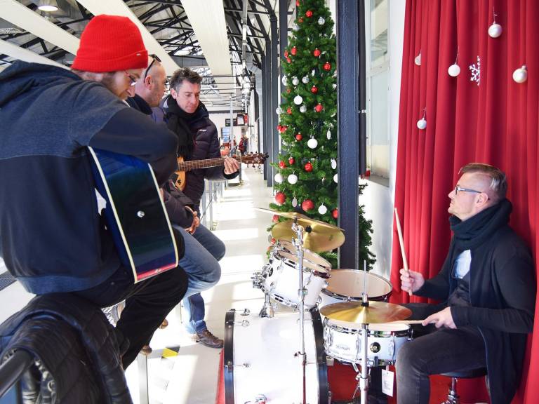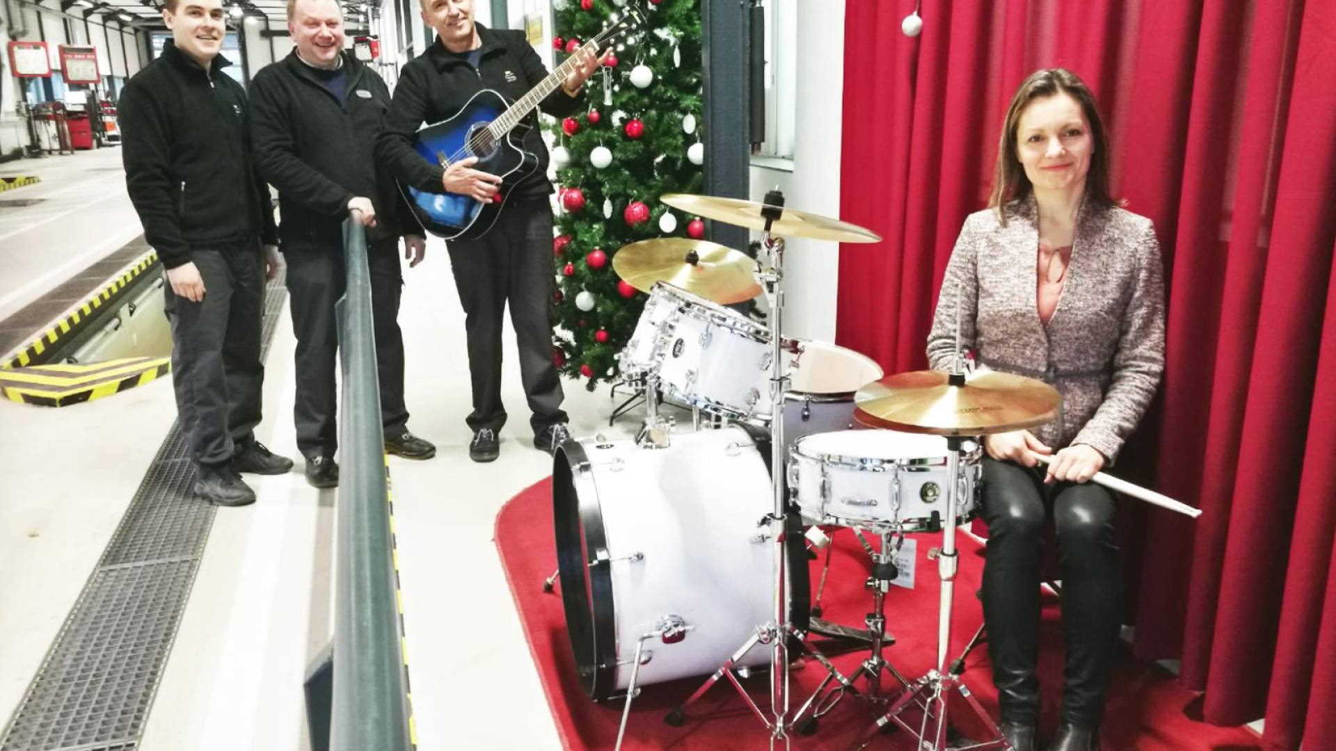 Tudi to zimo je v hali za tehnične preglede v Štajerskem avto domu prijetno vzdušje. Že četrto leto zapored lahko stranke med tem, ko čakajo na tehnični pregled vozila, pripravijo svoj mini koncert.