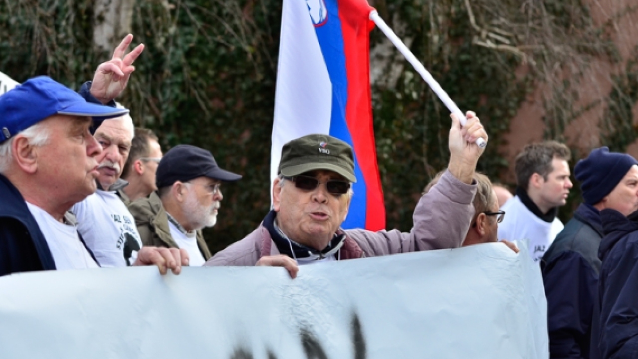 Na Trgu Leona Štuklja je danes protestiralo okoli 20 nasprotnikov migrantov in slovenske vlade.