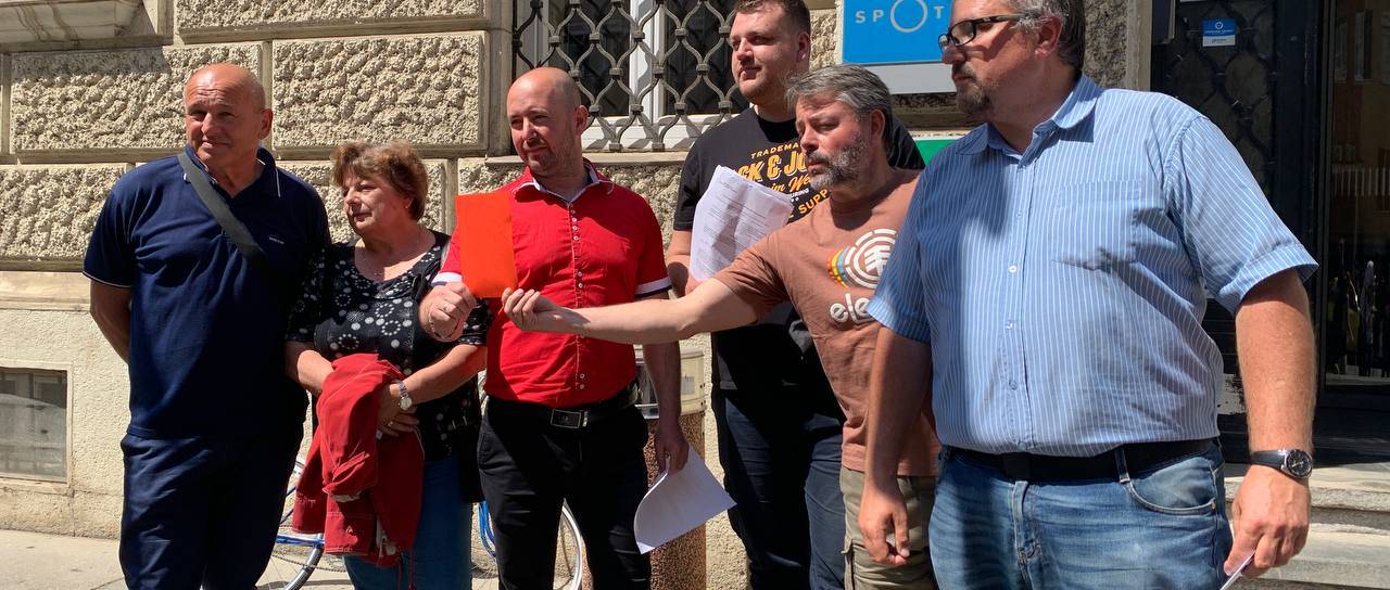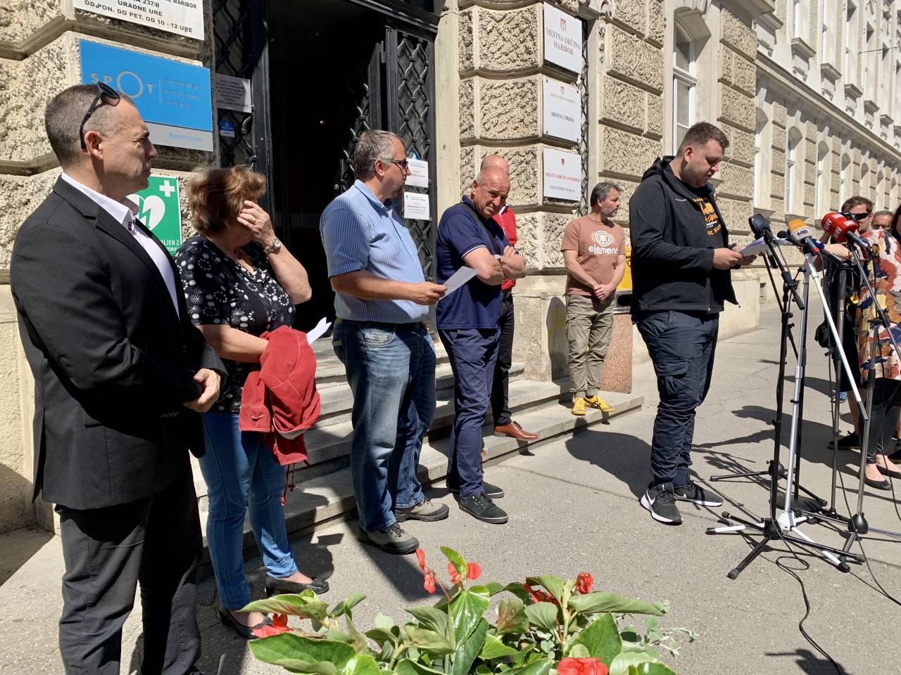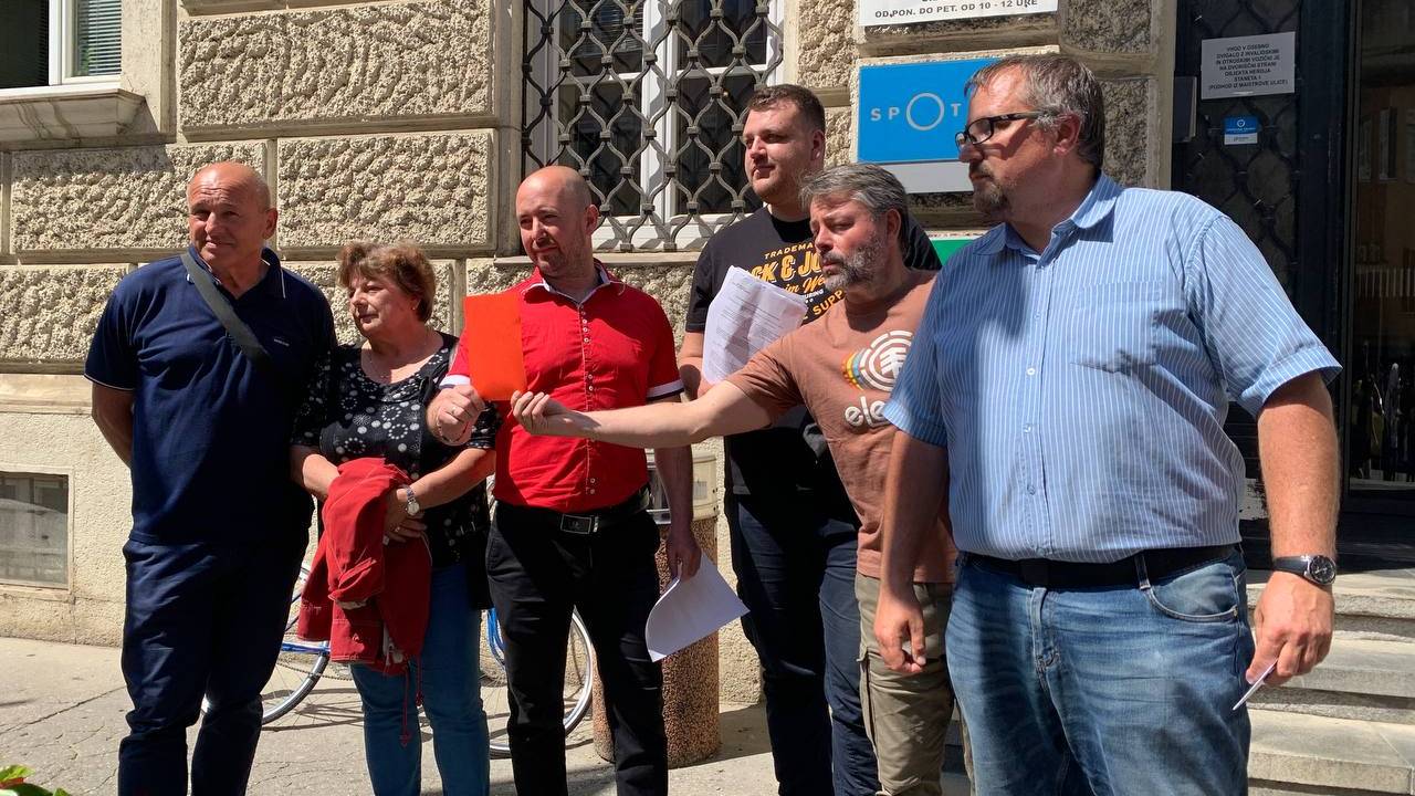 Pred stavbo mestne občine so Arsenoviču pokazali rdeč karton