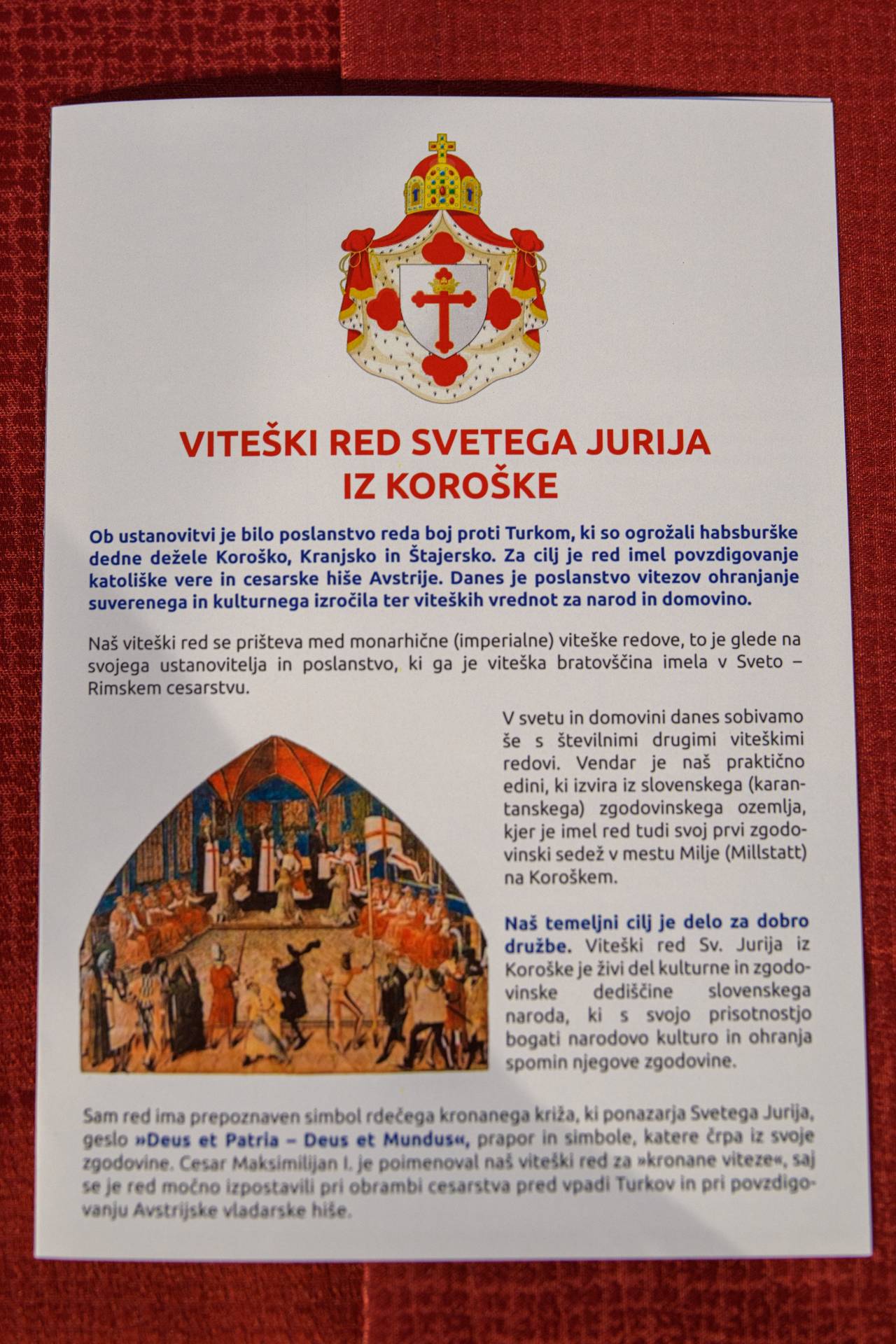 Veliki balijan mojster in prior Silvester Likar je na kratko predstavil, za kakšen dogodek gre. Kot je povedal, je Viteški red Sv. Jurija iz Koroške, imenovan tudi Karantanski viteški red, dogodek pripravljal slabo leto dni. V mesecu maju so dobili potrditev, da se ga bo udeležila visoka delegacija Kneževine Liechtenstein.