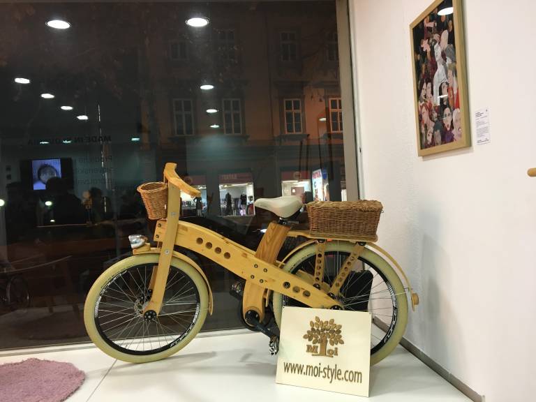 »Pomembno se mi zdi, da so moji izdelki naravni, ekološki, da so izdelani ročno in seveda iz slovenskega lesa.« Še posebej nam je v oči padel največji izdelek v razstavnem prostoru: »Leseno kolo prodajamo predvsem v tujino, saj je za Slovence morda malo predrag, stane namreč od 2.000 evrov, odvisno od naročila.«