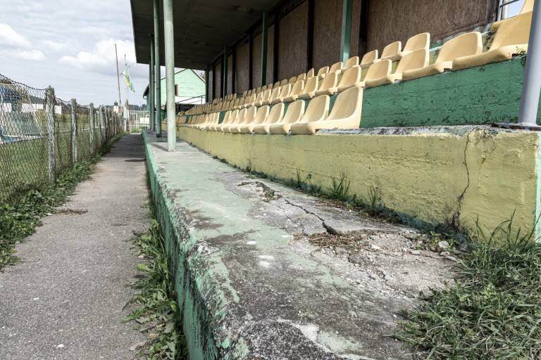 Zelenica na nogometnem igrišču se namreč pogreza, ob dežju na igrišču zastaja voda. Tribuna je izredno dotrajana, od deževju zamaka kritina, s katero so pokriti klubski prostori.