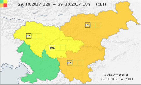 Tako je sredi dneva v notranjosti Slovenije pihal okrepljen jugozahodni veter, ki pa se je začel obračati na severo do severozahodno smer. Tako bodo predvsem na Štajerskem in v Pomurju bodo najmočnejši sunki ponekod lahko presegli hitrost 70 kilometrov na uro. Možne so tudi kratkotrajne padavine.