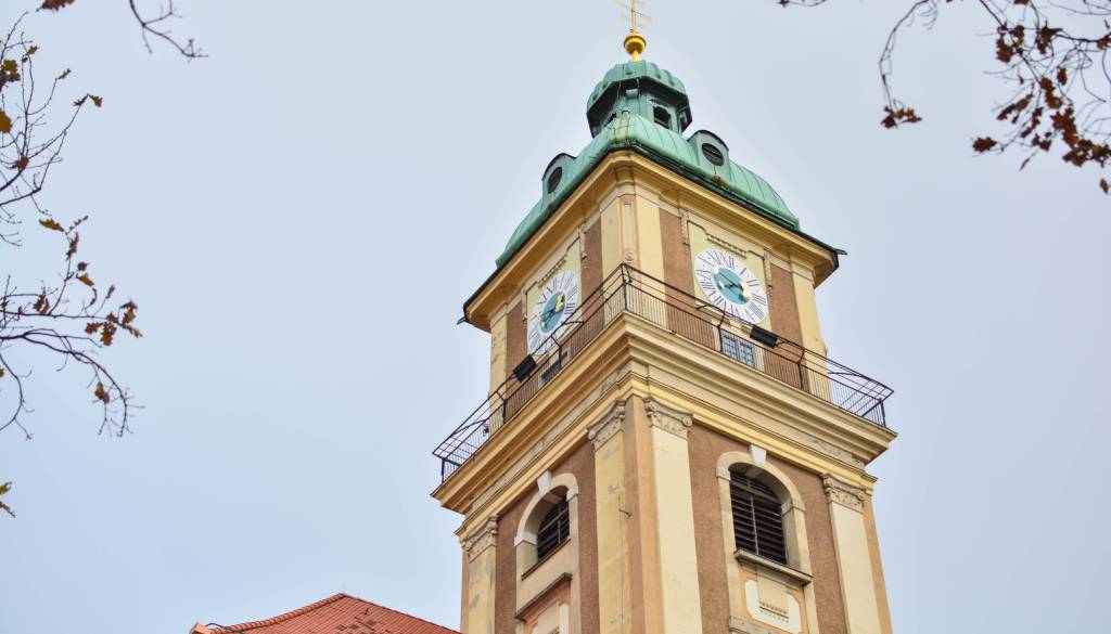 Hillebrandt je načrtoval zvonik z lepo klasicistično podobo, ki ima na vseh štirih straneh veliko uro s sinje modrim krogom na sredini.