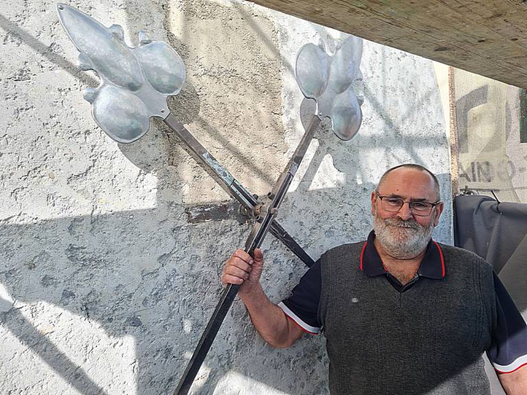 Za izdelavo kazalcev so dolgo iskali mojstra, ki bi lahko sklepal glave in repe kazalcev. »Iskanje nas je pripeljalo do mojstra kleparja iz Laznice pri Limbušu,« dodaja restavrator.