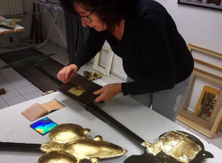 »Zato smo morali izdelati kar štiri serije poskusnih odtisov z emajlom na steklo, ki so bili žgani v postopku kaljenja, da smo naposled umerili odtenek, ki smo ga želeli,« je povedal Lombergar.
