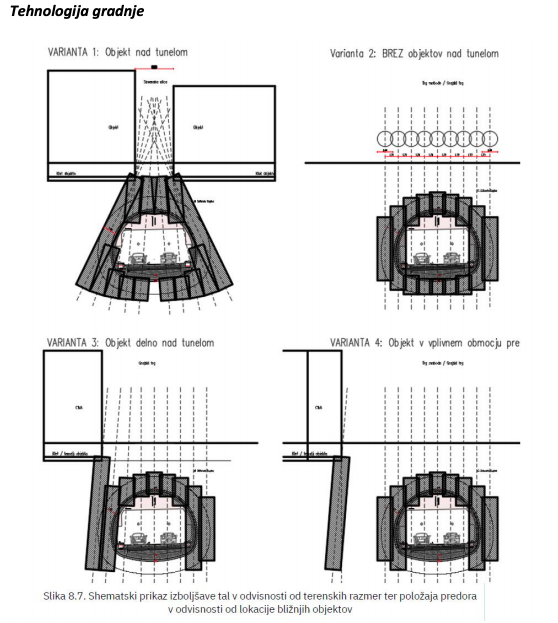 Za preprečitev poškodb okoliških objektov bi bili predvideni posebni ukrepi, in sicer izdelava zaščitnih pilotnih ali mikropilotnih sten, »jet grouting« slopov, kompenzacijsko injektiranje, ojačitev temeljev obstoječih objektov in tako dalje.